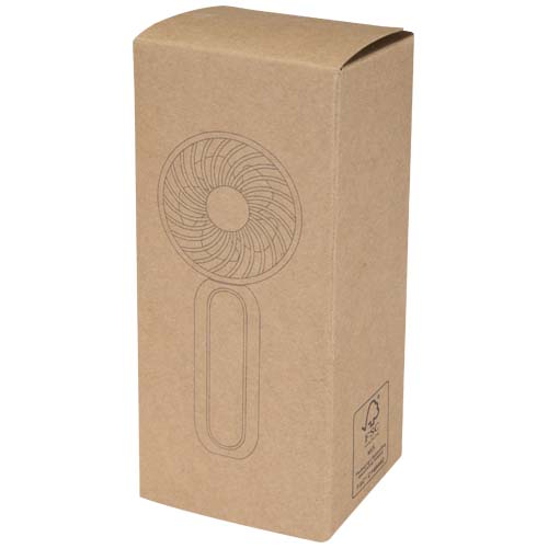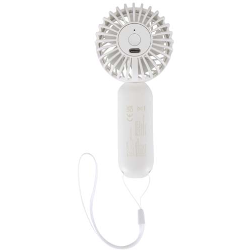 Ten przenośny mini wentylator, wykonany z tworzyw sztucznych pochodzących z recyklingu, oferuje trzy prędkości chłodzenia i charakteryzuje się kompaktową, wygodną w podróży konstrukcją. Idealny na imprezy plenerowe, do klubów, na festiwale lub w upalne i wilgotne dni – zapewnia szybkie i wygodne ochłodzenie w ruchu, dzięki czemu staje się praktycznym letnim niezbędnikiem zarówno na co dzień, jak i w podróży. Wentylator pracuje przez 3 godziny (niska prędkość), 2 godziny (średnia prędkość) lub 1,2 godziny (wysoka prędkość). Akumulator można ładować za pomocą dołączonego kabla USB-A do USB-C. Naładowanie od 0 do 100% zajmuje 2 godziny.