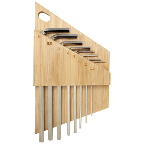 Allen zestaw bambusowych kluczy sześciokątnych to niezbędny zestaw narzędzi do majsterkowania i montażu mebli. Zestaw zawiera 8 kluczy sześciokątnych wykonanych z wytrzymałej stali węglowej, zapewniającej zarówno wytrzymałość, jak i odporność na korozję. Dzięki rozmiarom od 1,5 mm do 6 mm będziesz mieć pod ręką odpowiednie narzędzie do różnych zadań. Certyfikowany bambusowy uchwyt nie tylko pozwala uporządkować klucze sześciokątne, ale także służy jako stylowy, praktyczny i bardziej przyjazny dla środowiska dodatek do miejsca pracy. Ponieważ bambus jest produktem naturalnym, mogą występować niewielkie różnice w kolorze i rozmiarze, które mogą mieć wpływ na ostateczny wygląd nadruku. Zapakowany w pudełko upominkowe STAC pochodzące ze zrównoważonych źródeł.