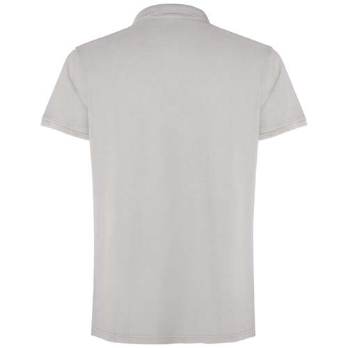 Koszulka polo unisex z krótkim rękawem Wykończenie uzyskane dzięki poddaniu działaniu wybielacza w celu uzyskania smug lub odbarwień. Dekolt i mankiety wykończone prążkowanym ściągaczem 1x1, z otworami po bokach. Ścieg kryty ton w ton. Zapięcie na trzy guziki.