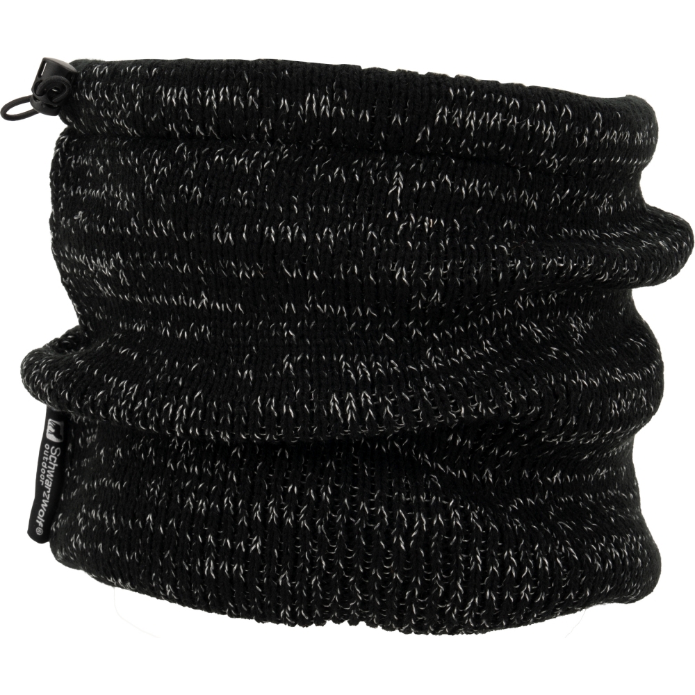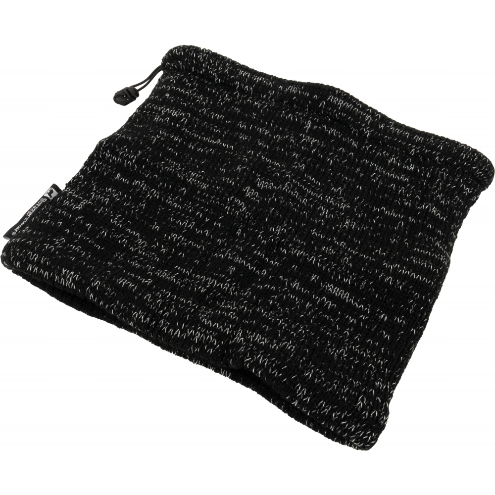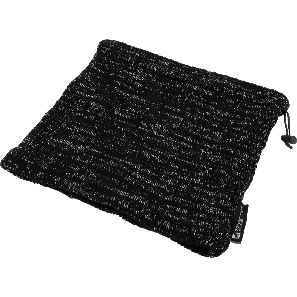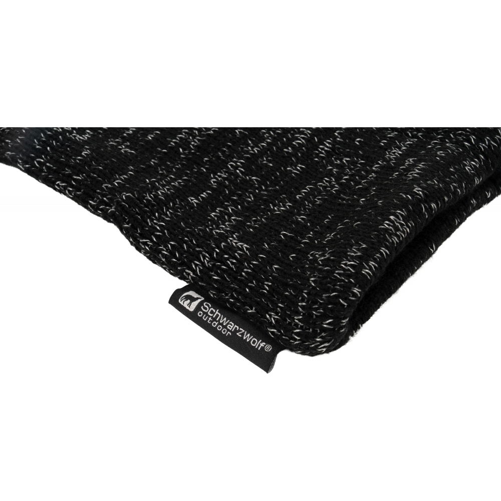 Dzianinowa, wielofunkcyjna bandana Schwarzwolf 2w1, można jej używać także jako czapki. W kolorze czarnym, pikowana przędzą odblaskową. Nadaje się na zimę, posiada gumę do ściągania na szyi. Podszewka wykonana jest z bardzo miękkiego i przyjemnego materiału polarowego.