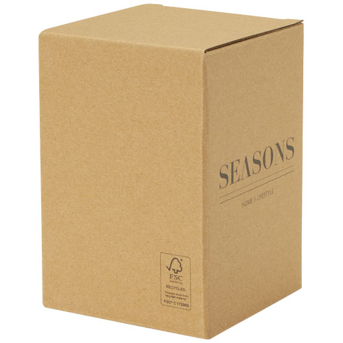 Średniej wielkości pojemnik na żywność wykonany ze szkła z bambusową pokrywką. Łączy w sobie zalety szkła, które jest bezpiecznym i trwałym materiałem, z odnawialnymi właściwościami bambusa. Szklany pojemnik (bez pokrywki) można podgrzewać w kuchence mikrofalowej i myć w zmywarce. Zapakowany w pudełko z papieru Kraft z recyklingu. Pojemność: 550 ml.