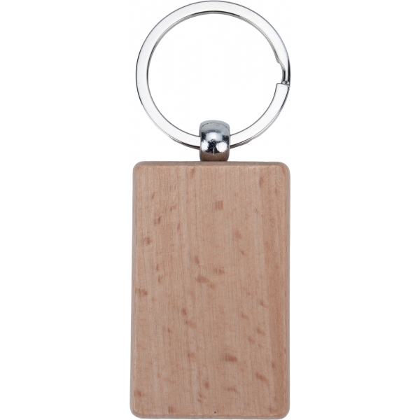 Drewniany brelok do kluczy. Do wyprodukowania użyto drewna i metalu. Dostępny w naturalnym, drewnianym kolorze.