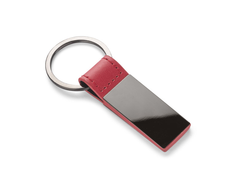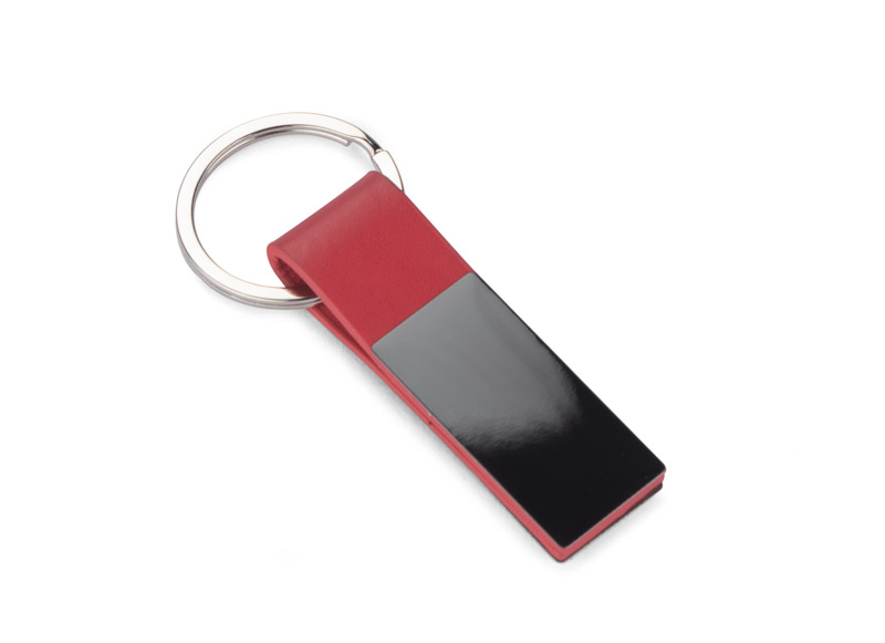 Elegancki dwustronny brelok wykonany z materiału skóropodobnego PU i metalu w kolorze grafitowym. Logo wygrawerujemy na metalowej blaszce.