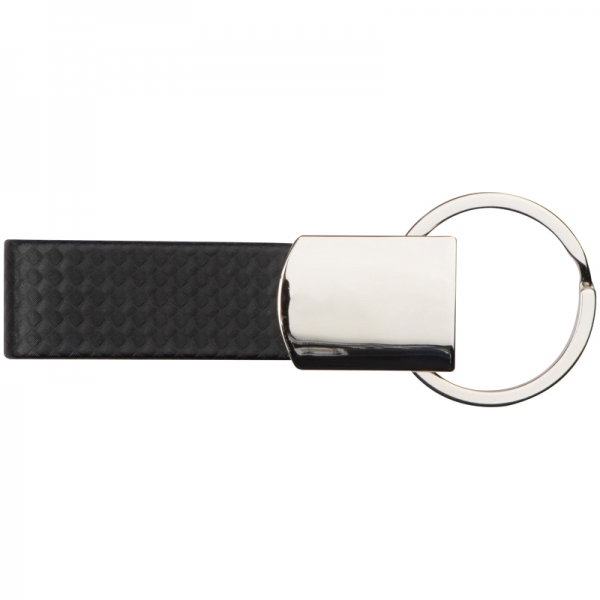 Brelok metalowy z ozdobnym czarnym paskiem, wykonanym z PU.
