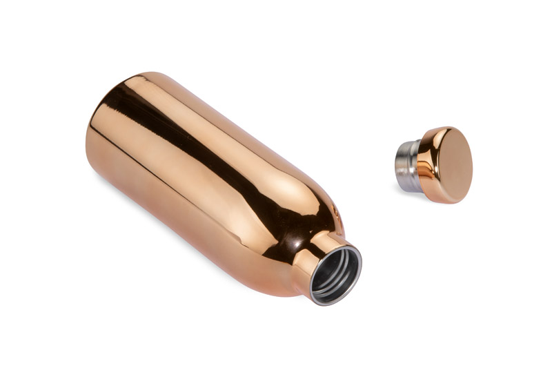 Butelka stalowa NEL w kolorze różowego złota to produkt klasy premium, który łączy elegancję stylu glamour z najwyższą funkcjonalnością. Lustrzany efekt powierzchni dodaje jej wyjątkowego blasku i nowoczesnego wyglądu. Butelka NEL jest wykonana z wysokiej jakości stali nierdzewnej, co zapewnia jej trwałość i odporność na uszkodzenia. Dzięki zaawansowanej izolacji termicznej, utrzymuje temperaturę zimnych napojów do 24 godzin, a ciepłych do 12 godzin. Co więcej, butelka charakteryzuje się neutralnym śladem węglowym, co czyni ją wyborem przyjaznym dla środowiska.