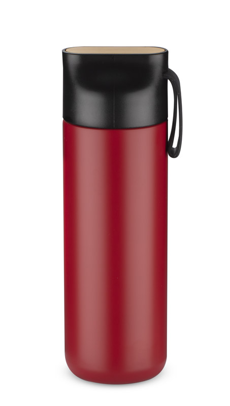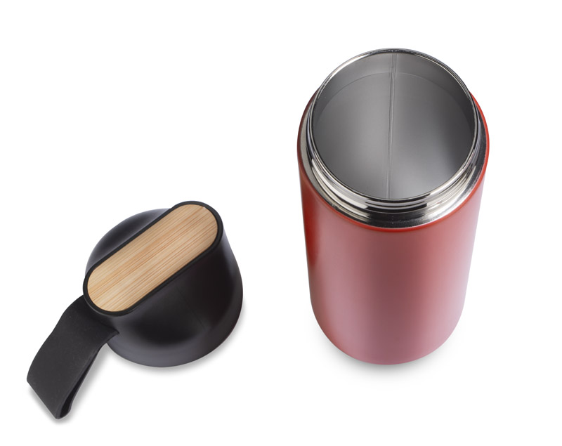 Butelka termiczna ELSA wykonana jest ze stali nierdzewnej o podwyższonym standardzie. Posiada próżnię między ściankami, dzięki czemu utrzymuje temperaturę napoju około 10 godzin. Zakrętka z tworzywa posiada ozdobny element z naturalnego bambusa i silikonowy uchwyt.