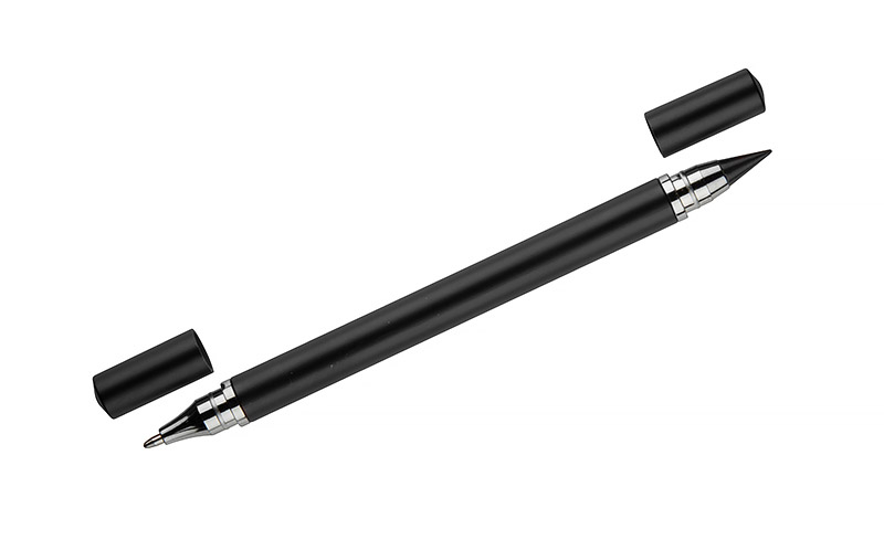 Długopis TWINO 2 w 1 łączy w jednym korpusie klasyczny długopis i wieczny ołówek, tworząc praktyczne narzędzie do codziennego użytku. Z jednej strony znajduje się długopis z zatyczką i wkładem o grubości pisania 1,0 mm, z drugiej – ołówek wieczny, który nie wymaga ostrzenia. Korpus wykonany jest z tworzywa o satynowym wykończeniu i ozdobiony srebrnymi pierścieniami podkreślającymi jego dopracowany wygląd. TWINO jest lekki, poręczny i wygodny, idealny do biura, szkoły lub jako funkcjonalny gadżet reklamowy.