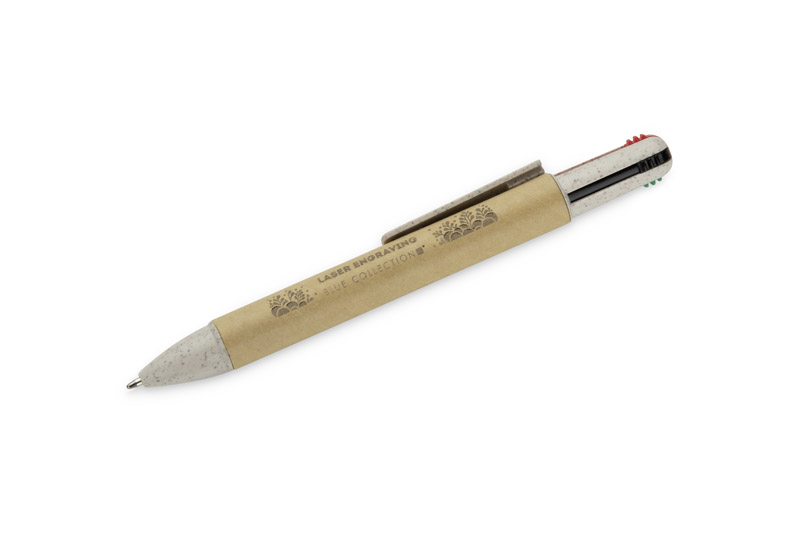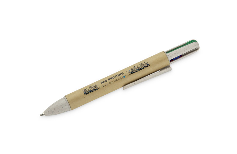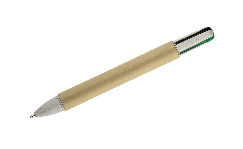 Długopis MIBO 4 w 1 to praktyczne narzędzie biurowe, które pozwala pisać w czterech kolorach — niebieskim, czarnym, czerwonym i zielonym. Korpus wykonany z papieru sprawia, że długopis jest lekki i przyjemny w użytkowaniu. Prosty, uniwersalny kształt oraz automatyczny mechanizm wysuwu ułatwiają szybkie przełączanie między kolorami. Wkłady typu X20 o grubości pisania 0,7 mm zapewniają płynne i czytelne pisanie. MIBO to funkcjonalny gadżet reklamowy z możliwością znakowania logo.