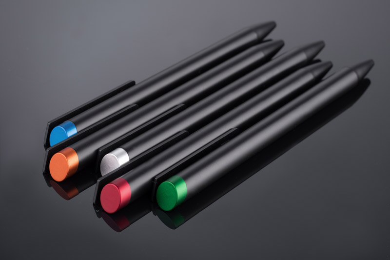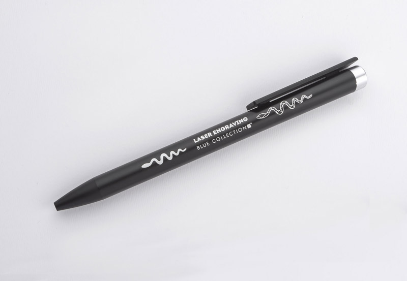 ALI to wyjątkowy długopis umożliwiający wykonanie znakowania w kolorze zbliżonym do końcówki długopisu oraz całkowicie zaskakującego grawerowania w dwóch kolorach - w kolorze zbliżonym do końcówki długopisu oraz białym (kolor aluminium). Czarny metalowy korpus oraz czarne wykończenia stanowią idealne tło dla kolorowego grawerowania. Długopis automatyczny. Wkład typu X20 o grubości 1.0 mm w kolorze niebieskim.