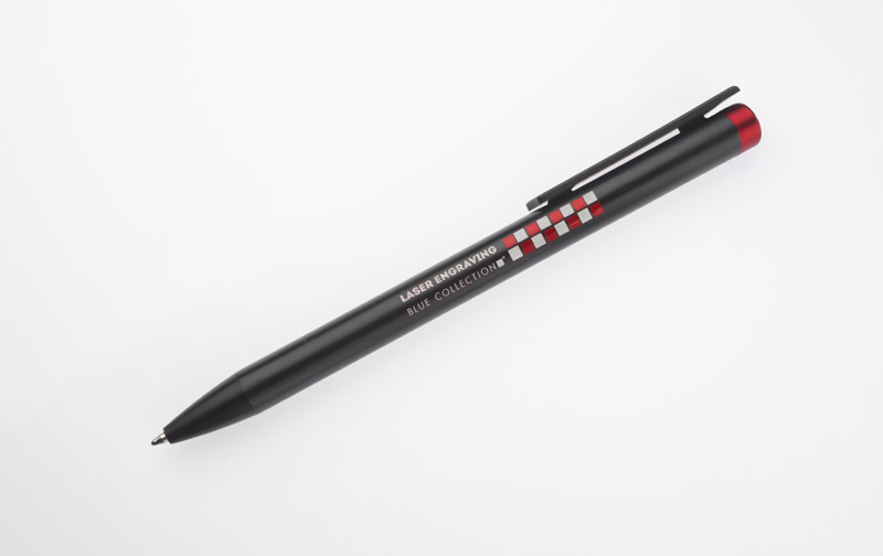 ALI to wyjątkowy długopis umożliwiający wykonanie znakowania w kolorze zbliżonym do końcówki długopisu oraz całkowicie zaskakującego grawerowania w dwóch kolorach - w kolorze zbliżonym do końcówki długopisu oraz białym (kolor aluminium). Czarny metalowy korpus oraz czarne wykończenia stanowią idealne tło dla kolorowego grawerowania. Długopis automatyczny. Wkład typu X20 o grubości 1.0 mm w kolorze niebieskim.
