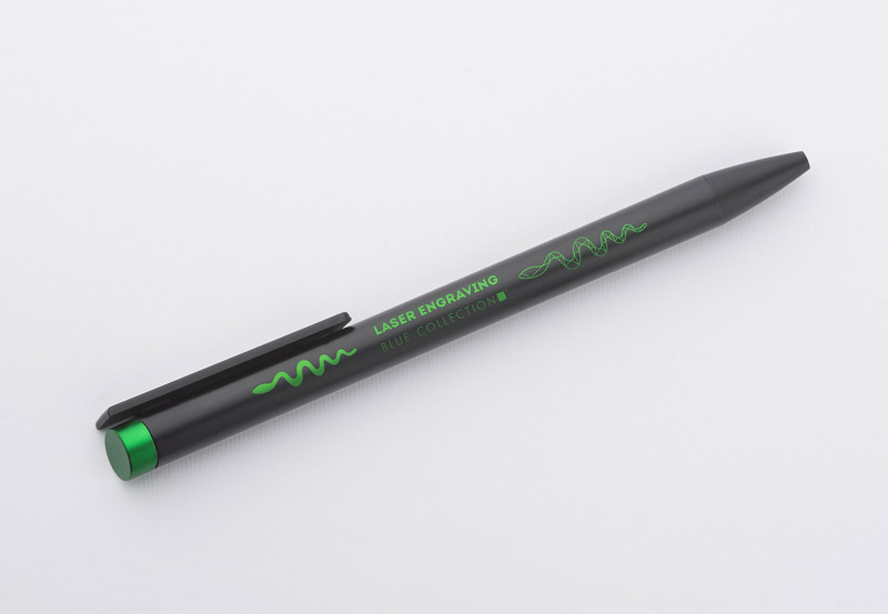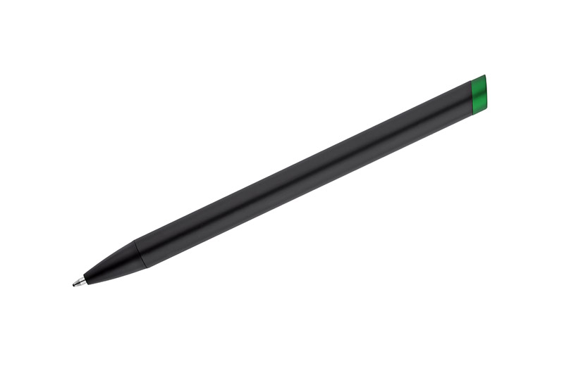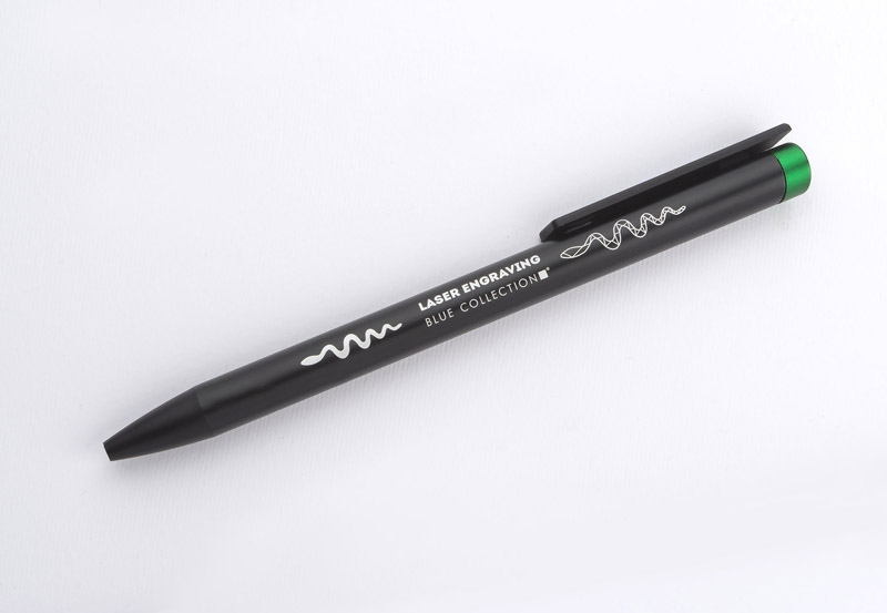 ALI to wyjątkowy długopis umożliwiający wykonanie znakowania w kolorze zbliżonym do końcówki długopisu oraz całkowicie zaskakującego grawerowania w dwóch kolorach - w kolorze zbliżonym do końcówki długopisu oraz białym (kolor aluminium). Czarny metalowy korpus oraz czarne wykończenia stanowią idealne tło dla kolorowego grawerowania. Długopis automatyczny. Wkład typu X20 o grubości 1.0 mm w kolorze niebieskim.