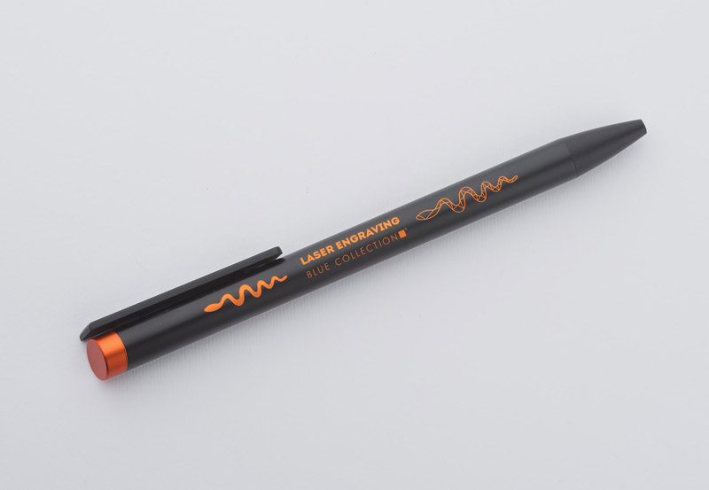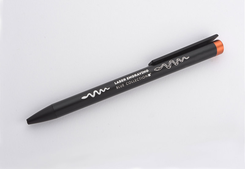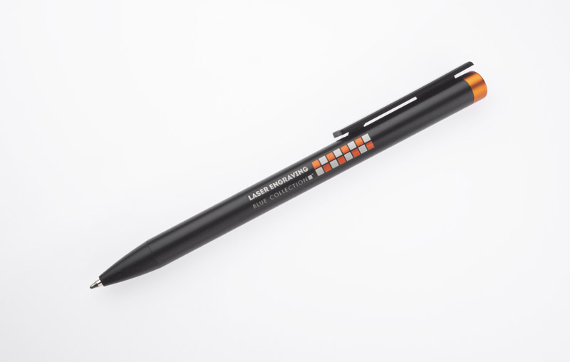 ALI to wyjątkowy długopis umożliwiający wykonanie znakowania w kolorze zbliżonym do końcówki długopisu oraz całkowicie zaskakującego grawerowania w dwóch kolorach - w kolorze zbliżonym do końcówki długopisu oraz białym (kolor aluminium). Czarny metalowy korpus oraz czarne wykończenia stanowią idealne tło dla kolorowego grawerowania. Długopis automatyczny. Wkład typu X20 o grubości 1.0 mm w kolorze niebieskim.