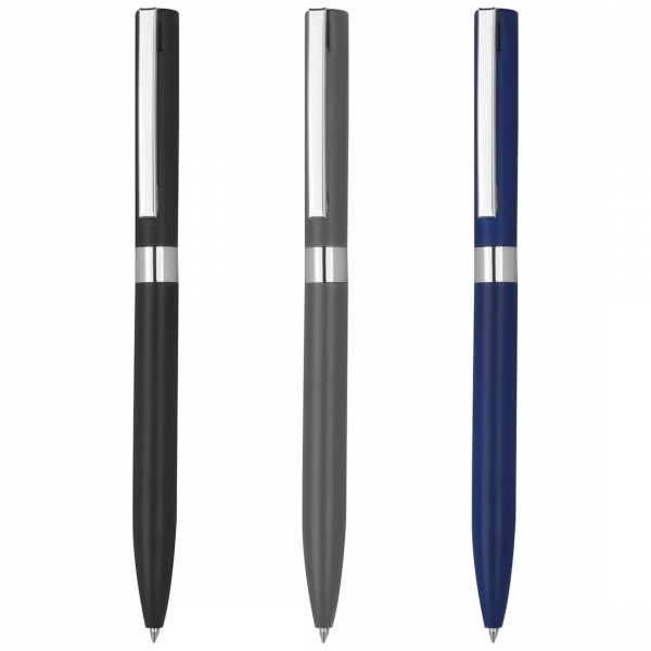 Długopis wykonany z aluminium z niebieskim, żelowym wkładem 0,7 mm.
