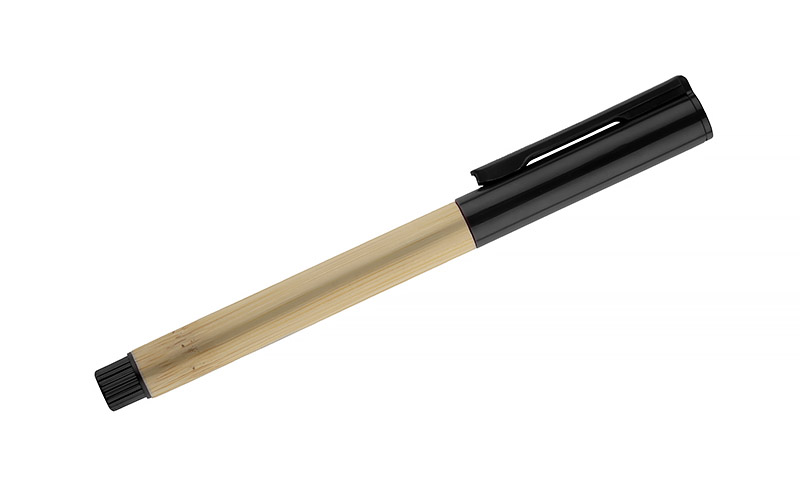 Długopis TUFI to połączenie naturalnego bambusa i tworzywa, które nadaje mu lekki i nowoczesny wygląd. Wyposażony w żelowy wkład o grubości pisania 0,5 mm, zapewnia płynny i precyzyjny zapis. Zatyczka chroni końcówkę przed wysychaniem, a gładka powierzchnia korpusu sprawia, że długopis dobrze leży w dłoni. TUFI to prosty, a jednocześnie stylowy gadżet reklamowy do codziennego użytku.