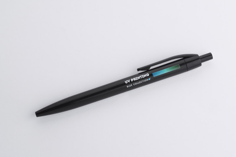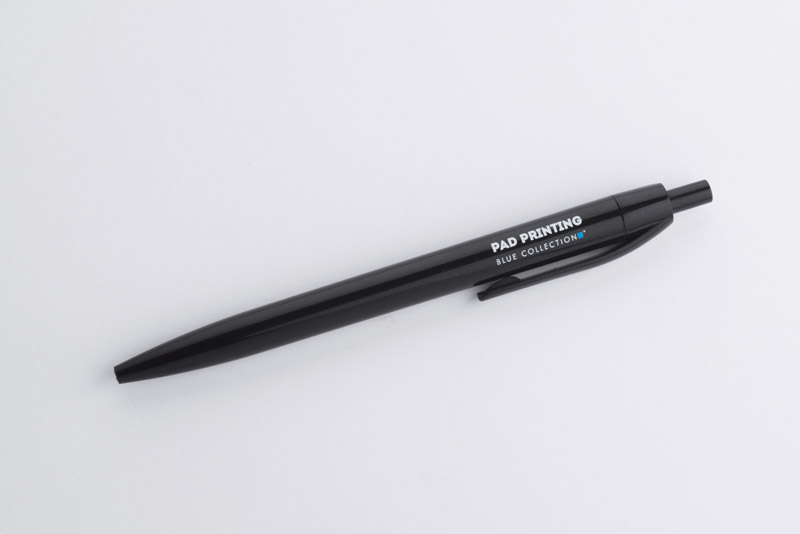 Plastikowy długopis BASIC z niebieskim wkładem. Logo nadrukujemy na korpusie.