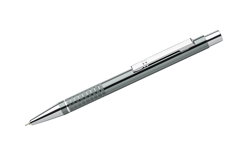 Długopis BONITO to klasyczny elegancki długopis metalowy o metalicznych kolorach z chromowanymi wykończeniami. Wykonany z aluminium. Korpus ozdobiony srebrnym ringiem na dole oraz paskami o delikatnie chropowatej strukturze. Nowy typ wkładu z tuszem półżelowym o grubości pisania 0,7 mm. Wkład w kolorze niebieskim.
