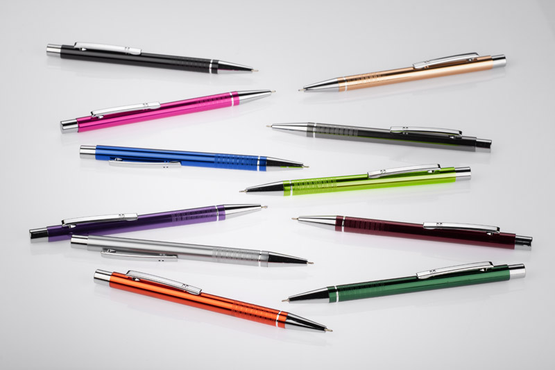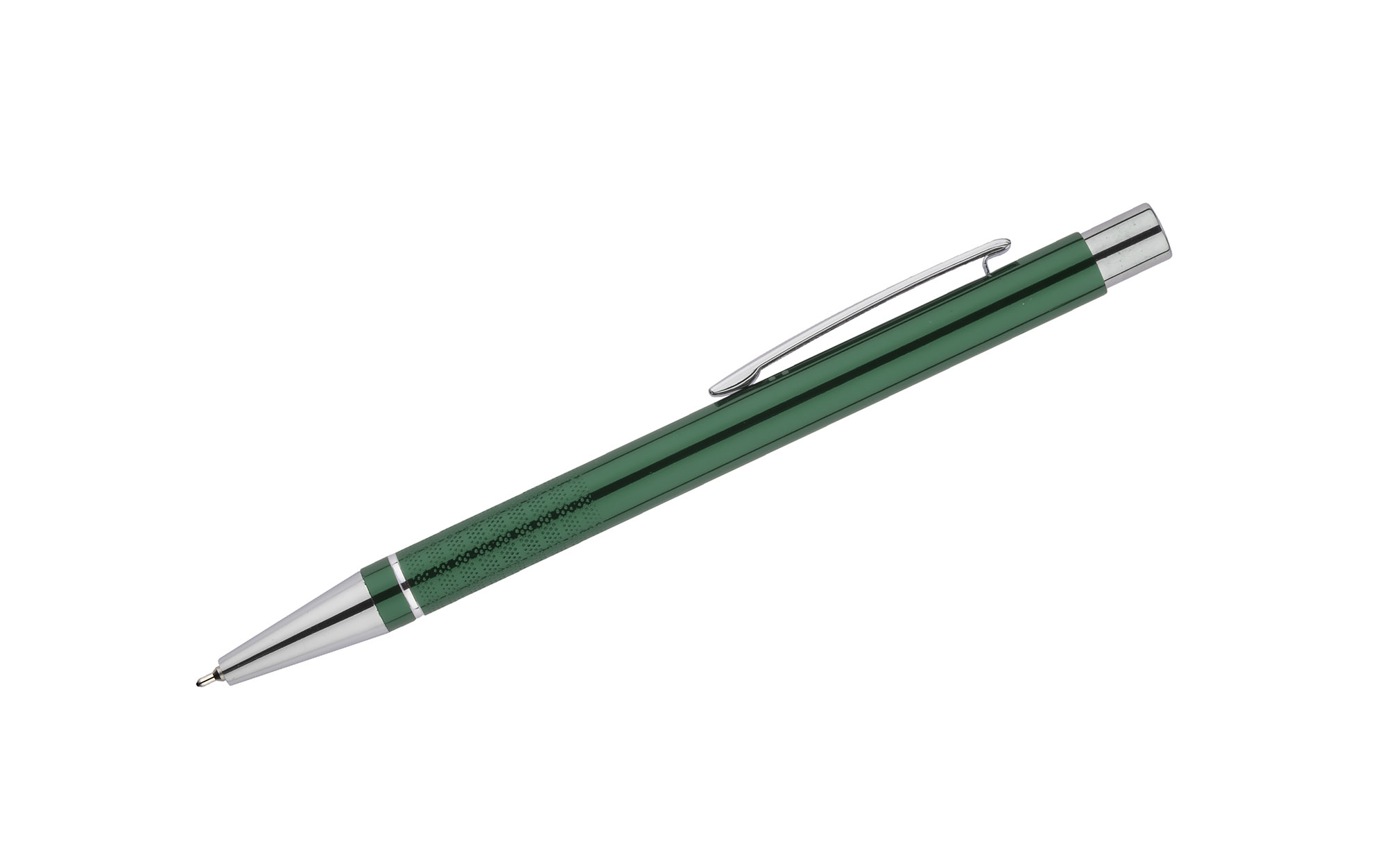 Długopis BONITO to elegancki metalowy długopis w metalicznych kolorach z chromowanymi wykończeniami. Wykonany z wysokiej jakości aluminium, korpus długopisu ozdobiony jest srebrnym ringiem oraz paskami o delikatnie chropowatej strukturze. Długopis wyposażony jest w wkład z tuszem półżelowym w kolorze czarnym o grubości 0,7 mm.