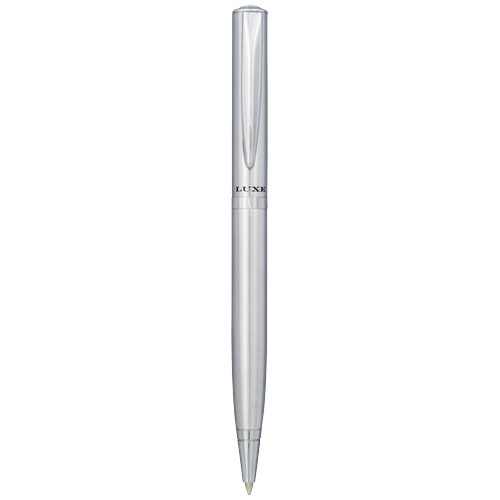 Elegancki i lekki długopis, dostępny w wersji z matowo-złotym wykończeniem, z akcentami w kolorze złota albo z matowo-srebrnym wykończeniem, z akcentami w kolorze chromu. Zawiera czarny wkład jakości premium i zapakowany w pudełko upominkowe "LUXE" (16,5 x 4,5 x 2,8 cm).