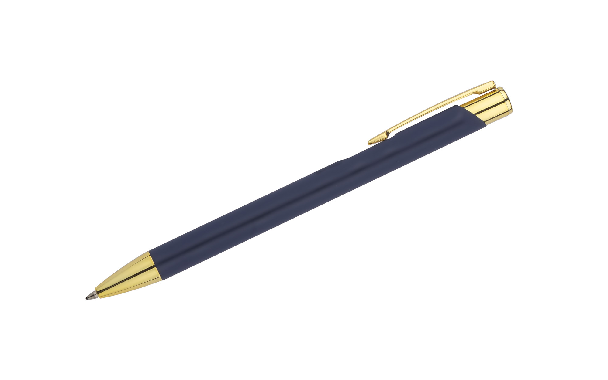 GOLDEN to długopis wyróżniający się przyjemną w dotyku gumowaną powierzchnią oraz wyjątkowo eleganckimi złotymi wykończeniami. Korpus wykonany z aluminium. Możliwość wygrawerowania logo w kolorze złotym, które doskonale pasuje do wykończeń długopisu. Długopis automatyczny. Wkład typu G2 w kolorze niebieskim.