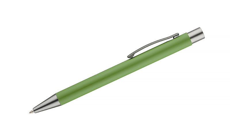 Długopis GOMA to prosty design połączony z przyjemna w dotyku gumowana powierzchnią. Całość jest utrzymana w lekkich, matowych barwach. Wykonany z aluminium. Wykończenia w kolorze grafitowym. Wkład w kolorze niebieskim.