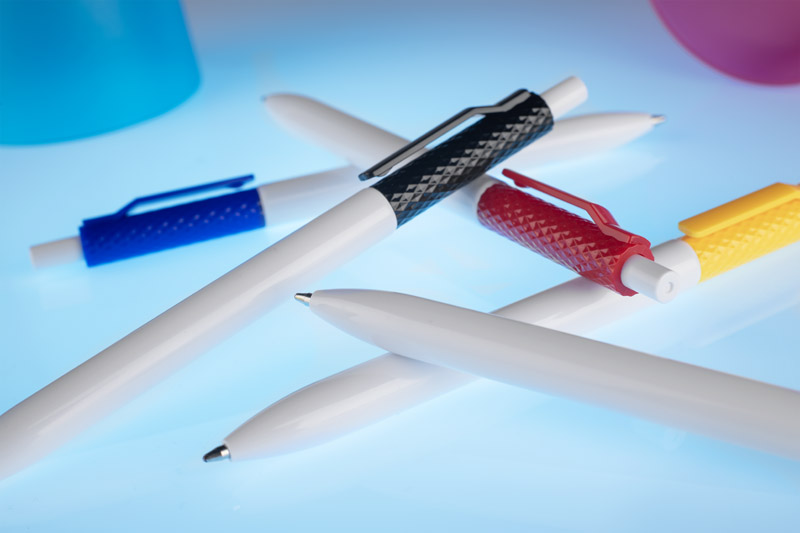 Długopis KARBI wykonany jest z tworzywa i wykończony błyszczącym lakierem. Jego charakterystycznym elementem jest karbowana struktura górnej części korpusu oraz klip w tym samym kolorze, tworzące spójną całość. Mechanizm automatyczny zapewnia wygodę użytkowania, a wkład typu X20 o grubości pisania 1,0 mm gwarantuje płynny zapis. Prosty i nowoczesny design sprawia, że KARBI to praktyczny gadżet reklamowy, idealny do codziennego użytku i znakowania logo.