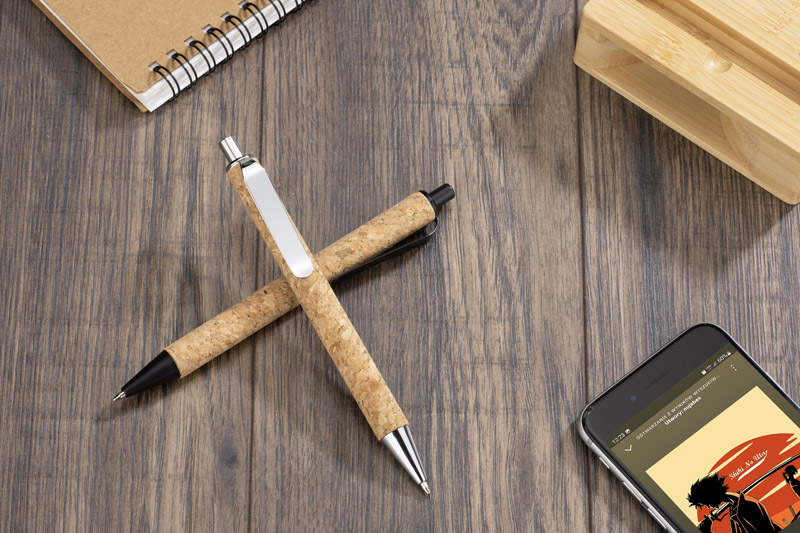 Długopis KORATO wyróżnia się swoim unikalnym designem. Metalowe wykończenia dodają elegancji, a naturalny korek podkreśla jego ekologiczny charakter. To nie tylko długopis, to styl życia, który nawiązuje do idei recyklingu i dbałości o środowisko. Niebieski wkład sprawia, że pisanie jest płynne i przyjemne, a jednocześnie wyraźne i czytelne. Długopis KORATO to idealne narzędzie dla każdego, kto ceni sobie komfort i jakość pisania.