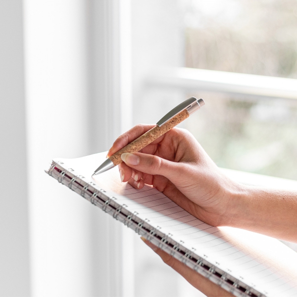 Długopis korkowy to ekologiczne rozwiązanie łączące naturalny design z funkcjonalnością na najwyższym poziomie. Jego lekki, a zarazem wytrzymały korpus wykonany z naturalnego korka nie tylko prezentuje się stylowo, ale także gwarantuje komfort pisania dzięki przyjemnej w dotyku, unikalnej fakturze. Wyposażony w niebieski wkład o dużej pojemności, długopis zapewnia długotrwałe, płynne i precyzyjne pisanie, co czyni go idealnym narzędziem zarówno do codziennych notatek, jak i profesjonalnych zadań. To doskonały wybór dla osób ceniących ekologiczne produkty, które jednocześnie spełniają wysokie wymagania praktyczne i estetyczne.