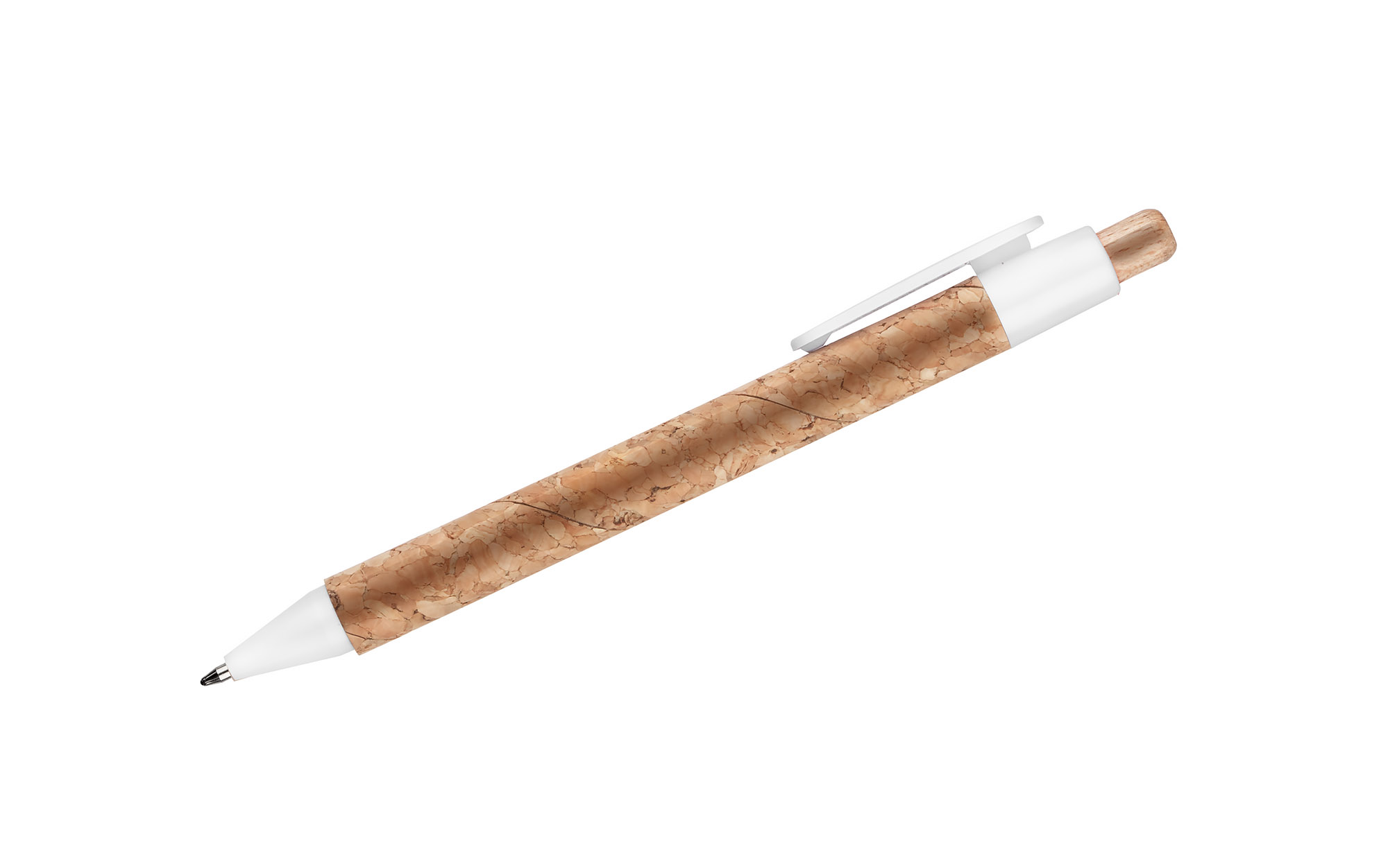 Długopis KORTE nawiązuje swoim wyglądem do idei recyclingu. Korpus został wykonany z naturalnego korka, a przycisk z drewna. Wykończenia z tworzywa sztucznego w żywych kolorach dodają mu uroku. Wkład w kolorze niebieskim.