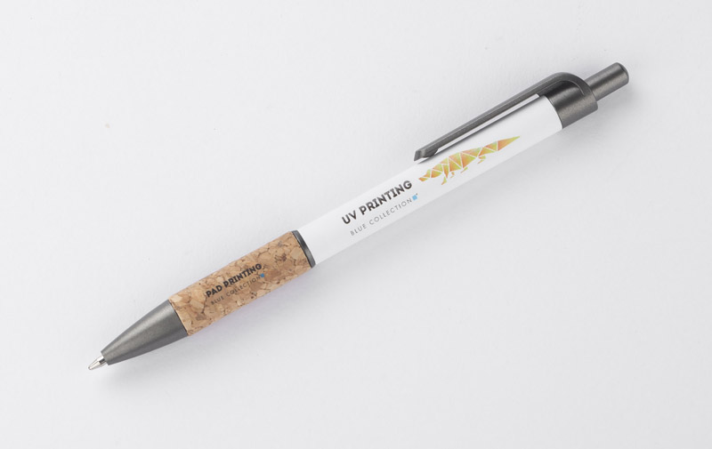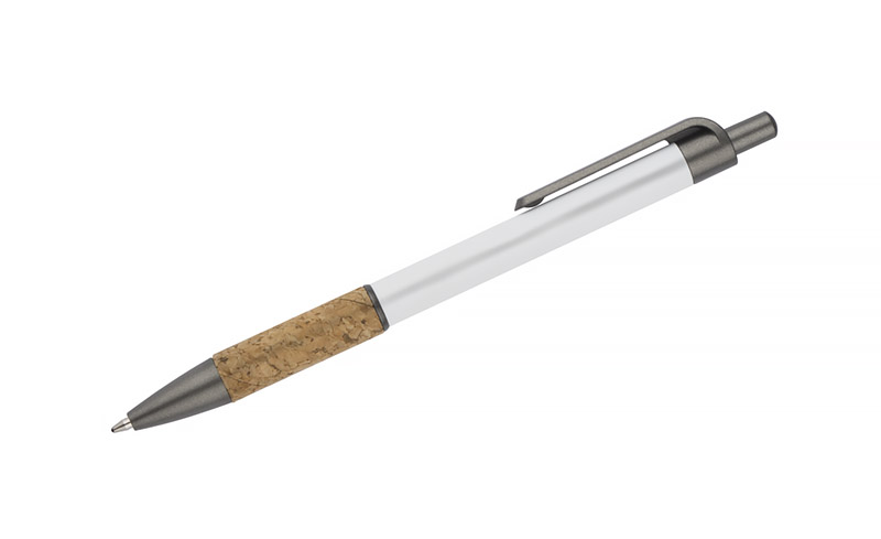 Długopis KUBOD to klasyczny model o prostym, eleganckim kształcie, idealny do znakowania. Aluminiowy korpus pokryty został matową powłoką soft touch, która zwiększa komfort użytkowania. Naturalny korek w części chwytnej przyciąga uwagę i wyróżnia produkt na tle standardowych modeli. Metaliczne akcenty z tworzywa dodają całości nowoczesnego charakteru. Długopis posiada mechanizm automatyczny i jest wyposażony w niebieski wkład typu X20 (wymienny, niedostępny w naszej ofercie).