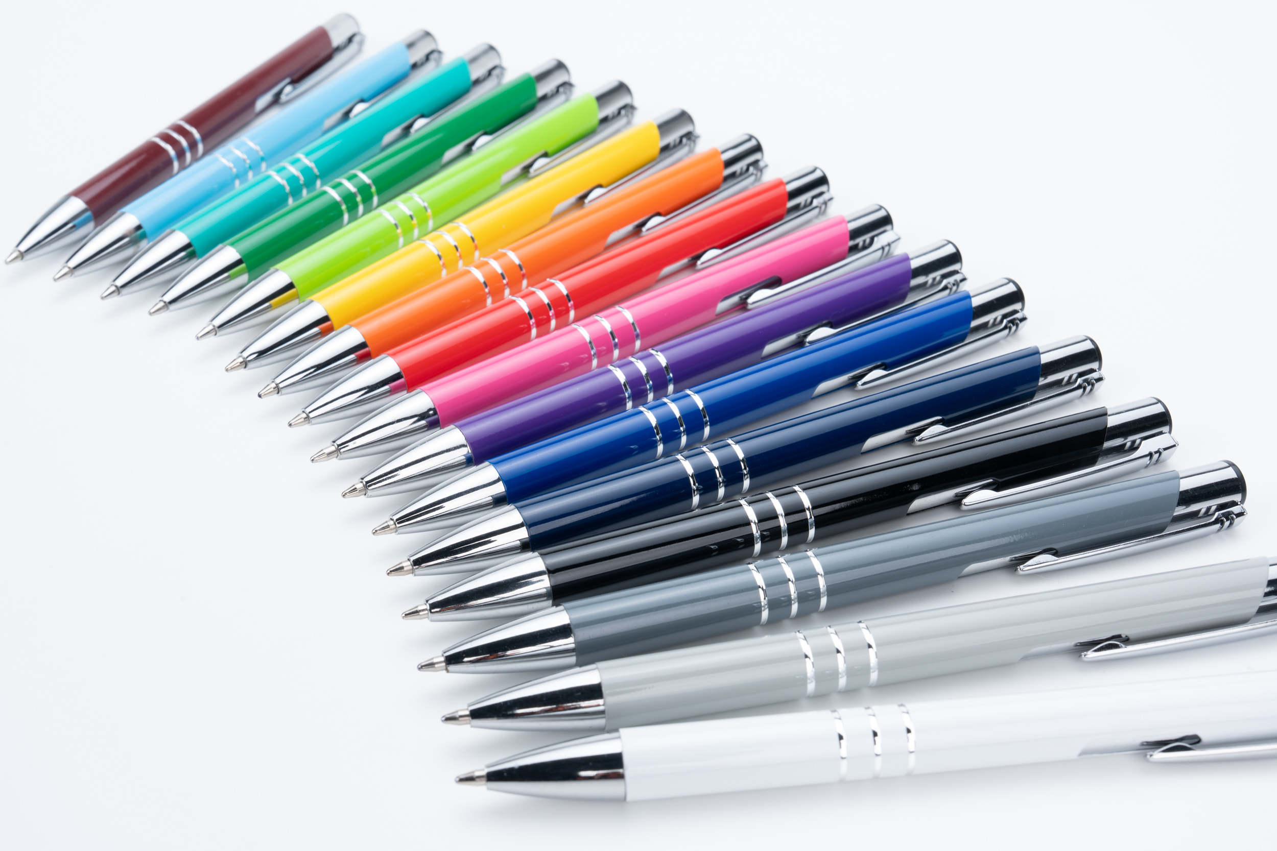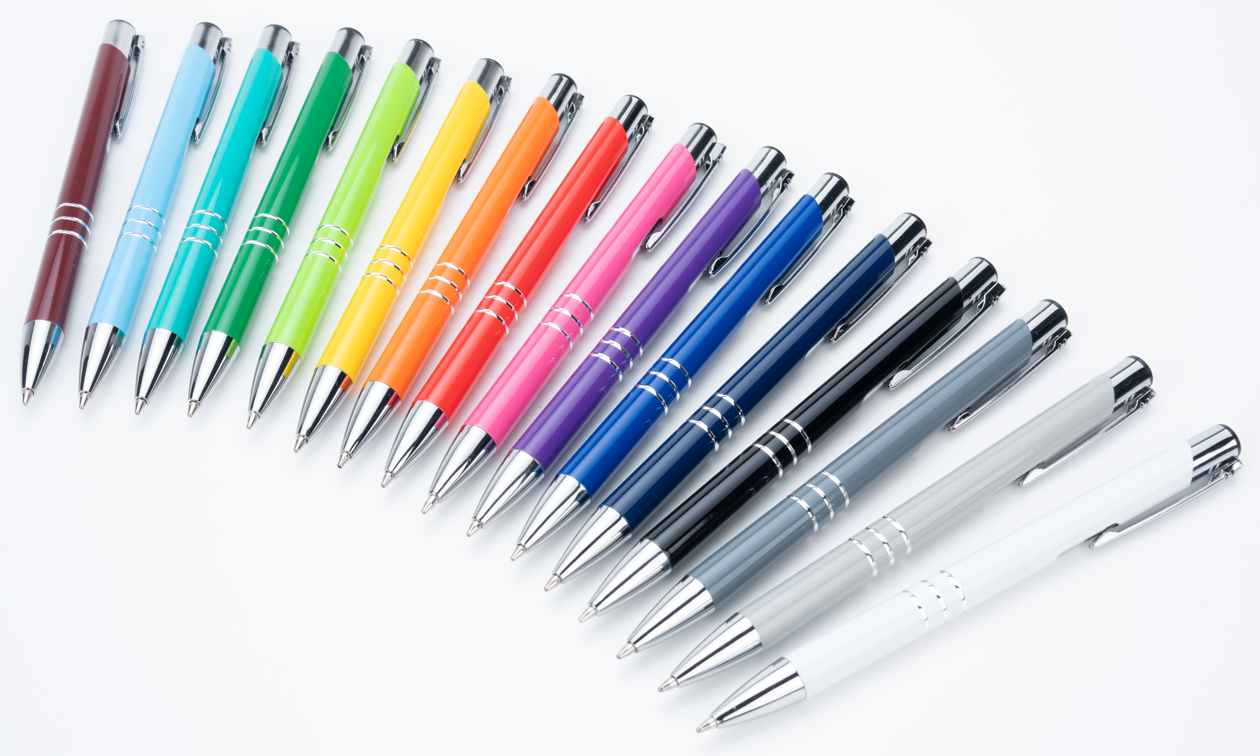Klasyczny długopis metalowy z chromowanymi elementami i smukłym klipsem. Długopis wyposażony w duży niebieski wkład.