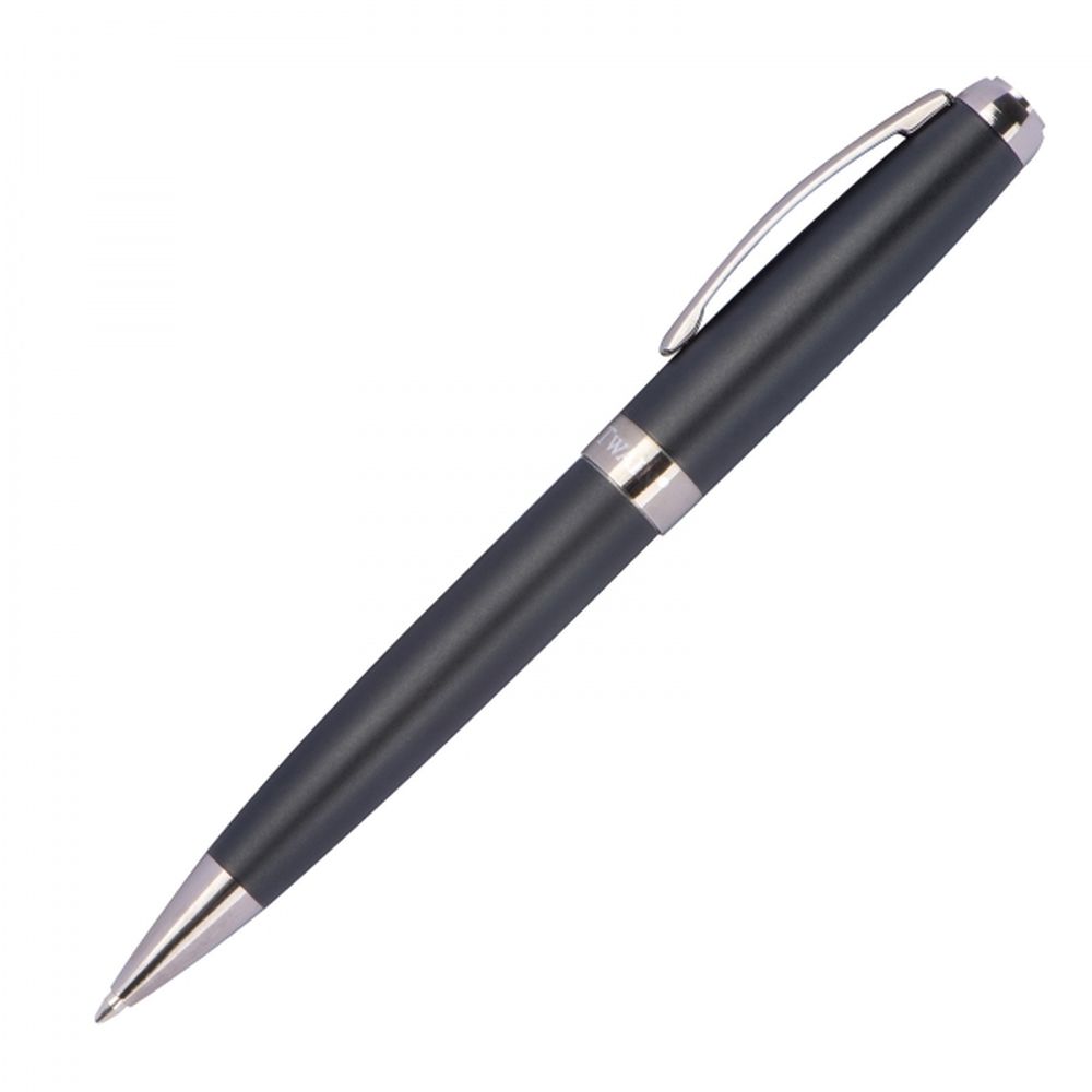 Długopis marki Mark Twain z mechanizmem obrotowym, o matowej powłoce ze wstawkami w kolorze gun metal, z wkładem typu Parker.
