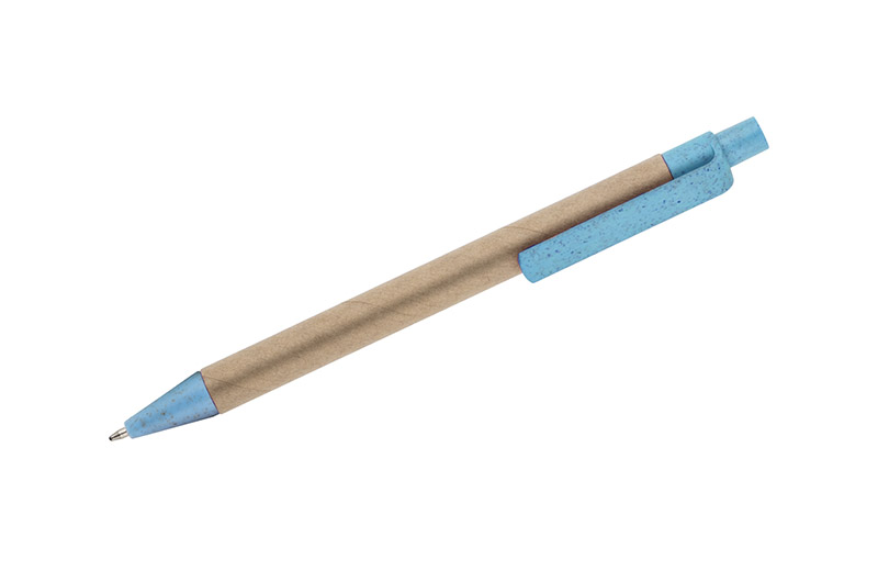 Długopis TIKO wykonany został z myślą o ponownym wykorzystaniu surowców. Jego korpus wykonany jest z papieru po recyklingu, a końcówki z tworzywa z domieszką słomy, która ogranicza ilość tworzywa sztucznego potrzebnego do produkcji. Prosty, ponadczasowy wzór. Długopis automatyczny. Wkład typu X20 w kolorze niebieskim.