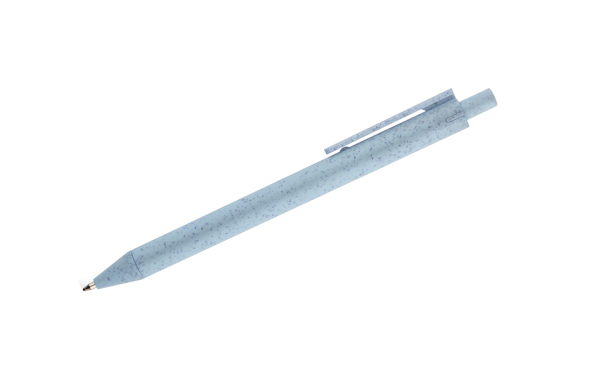 Długopis REVI został wykonany z myślą o wszystkich, którym bliska jest idea redukowania odpadów z tworzywa sztucznego. Tradycyjne tworzywo sztuczne zostało zastąpione specjalnym materiałem wykonanym w 40% z naturalnej słomy. Klasyczny, prosty kształt czyni go uniwersalnym gadżetem. Długopis automatyczny. Wkład typu X20 w kolorze niebieskim.