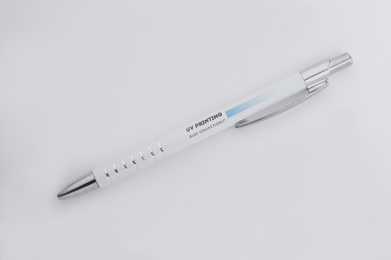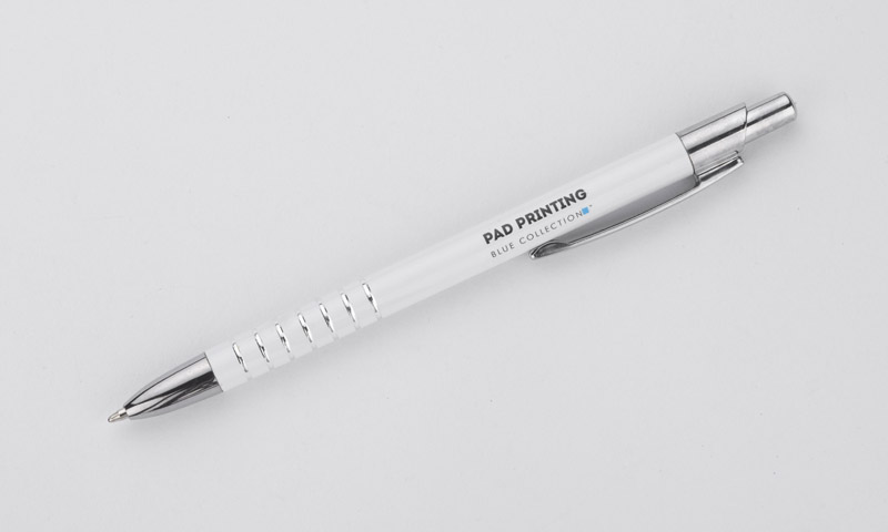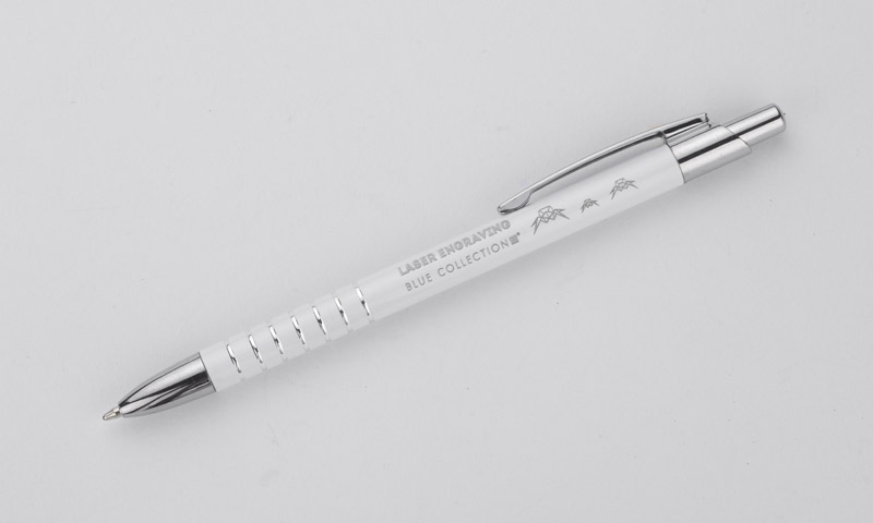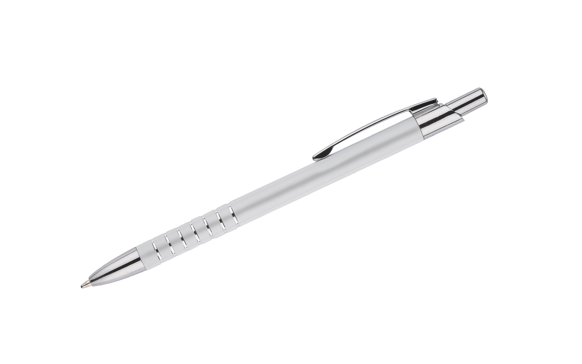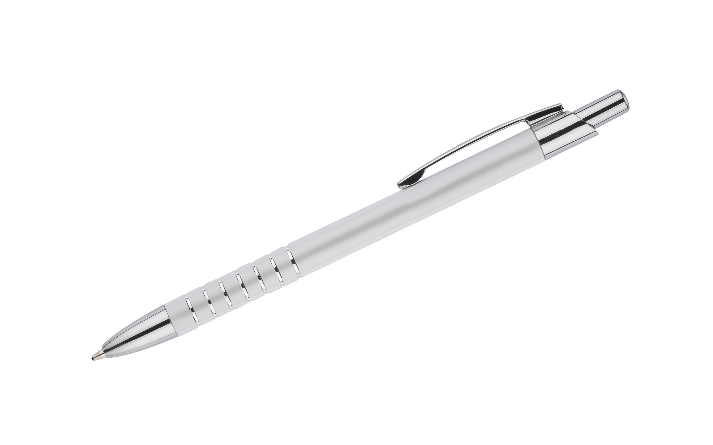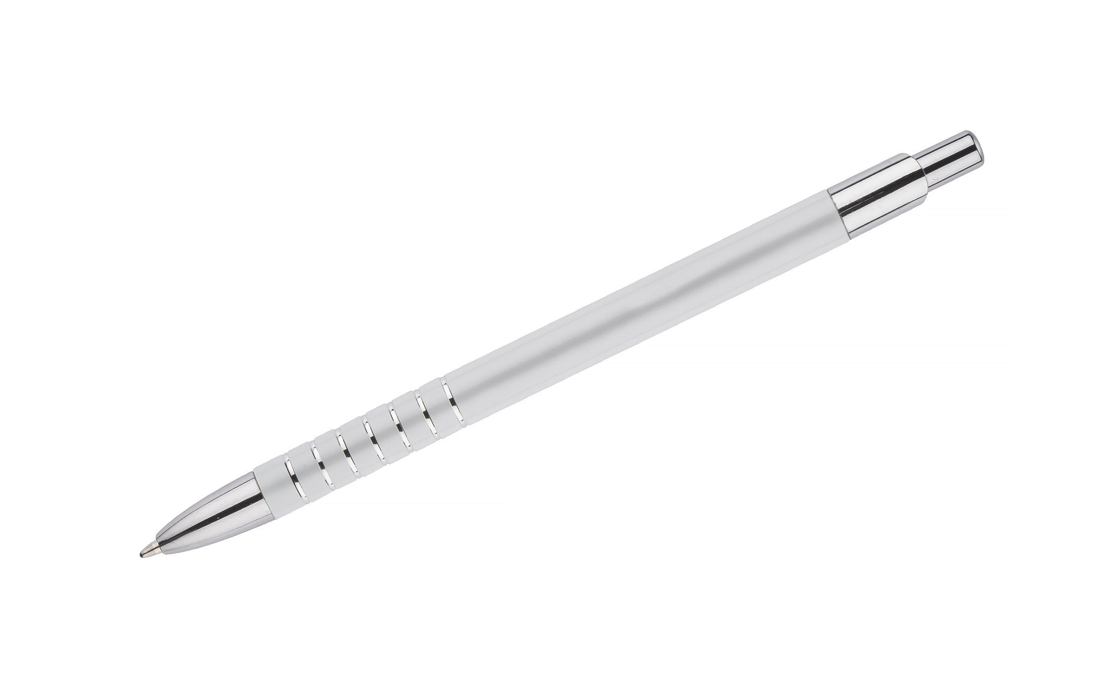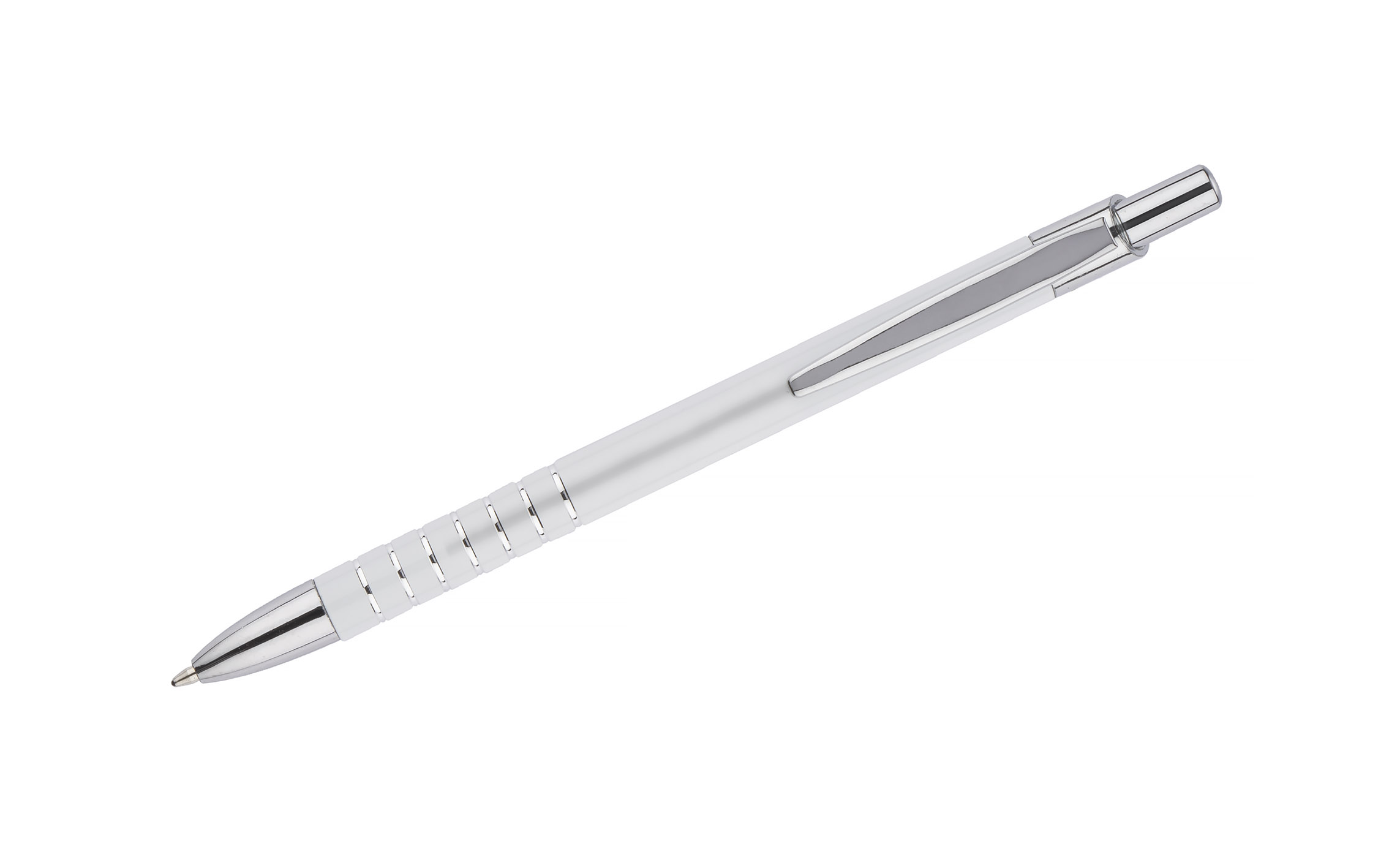 Prosty długopis wykonany z aluminium ozdobiony szerokimi ringami. Logo wygrawerujemy.