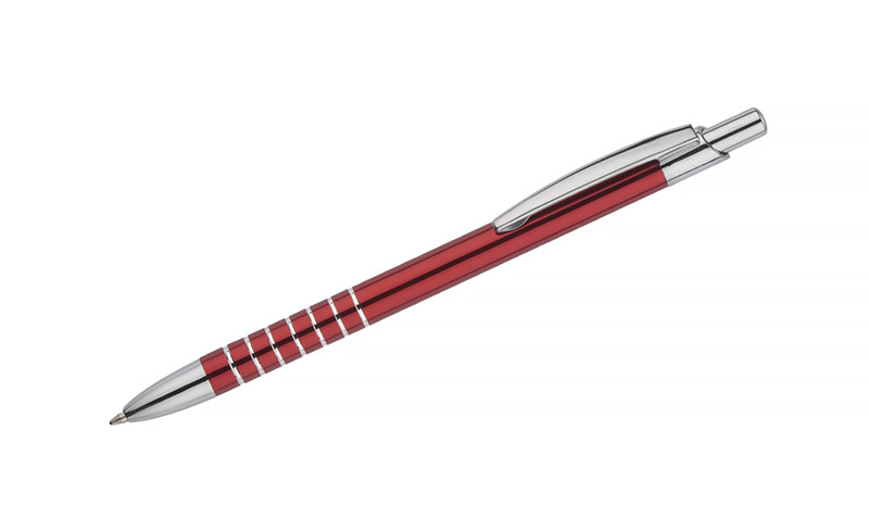 Prosty długopis wykonany z aluminium ozdobiony szerokimi ringami. Logo wygrawerujemy.