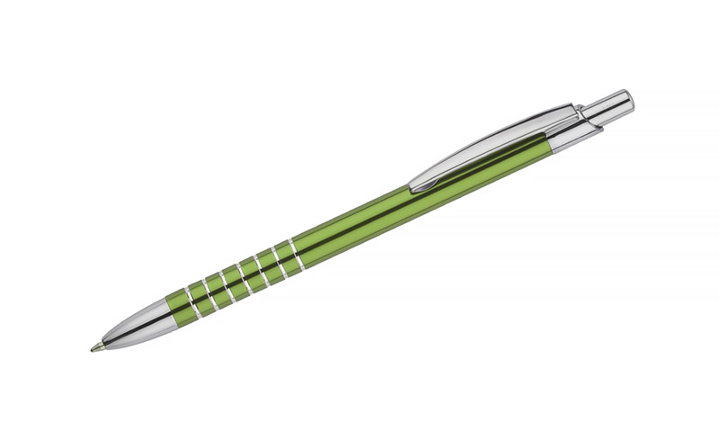 Prosty długopis wykonany z aluminium ozdobiony szerokimi ringami. Logo wygrawerujemy.