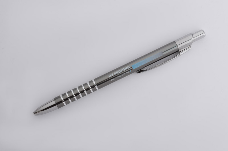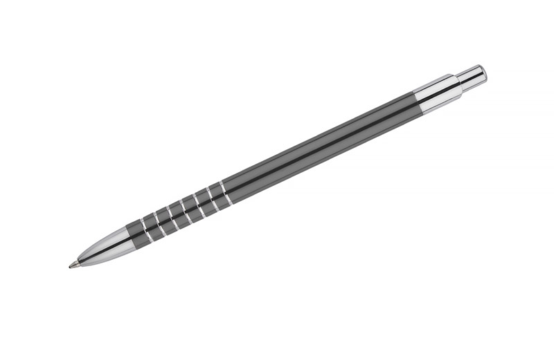 Prosty długopis wykonany z aluminium ozdobiony szerokimi ringami. Logo wygrawerujemy.
