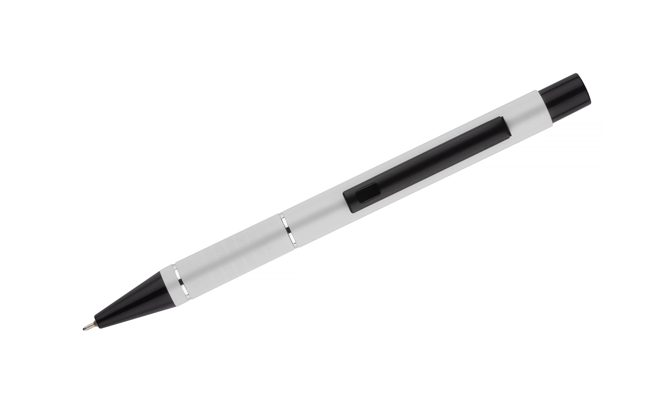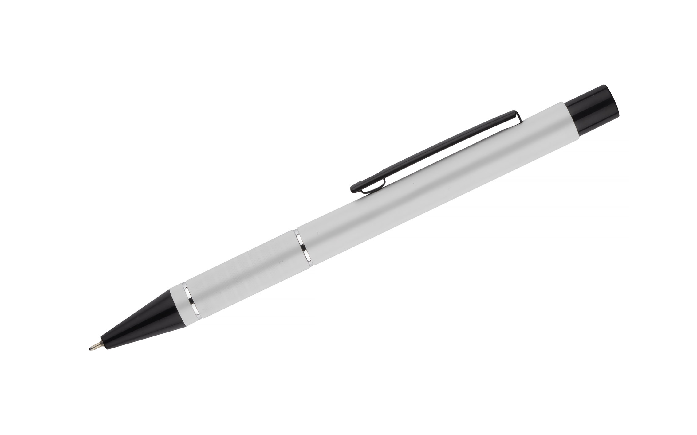 Długopis SATO łączy w sobie niezawodność, piękno i funkcjonalność. Wykonany jest z lekkiego aluminium, a czarne wykończenie nadaje mu elegancji i prestiżu, sprawiając, że doskonale sprawdzi się jako produkt reklamowy w każdej branży. Korpus długopisu został ozdobiony dwoma srebrnymi ringami oraz paskami o delikatnie chropowatej strukturze, dodając mu przyjemnie sensorycznego wymiaru. Wkład z tuszem pół żelowym zapewnia niesamowicie gładkie i płynne pisanie. Grubość linii 0,7 mm pozwoli użytkownikom cieszyć się wyjątkowo precyzyjnymi notatkami, podkreśleniami i listami.