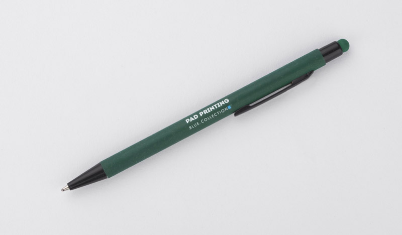 Klasyczny, cienki długopis PRIM wykonany z aluminium pokrytego gumowaną powłoką typu soft touch. Na górze końcówka do obsługi ekranów dotykowych w kolorze dopasowanym do korpusu długopisu. Wykończenia w kolorze czarnym. Długopis automatyczny. Wkład typu X20 w kolorze niebieskim.