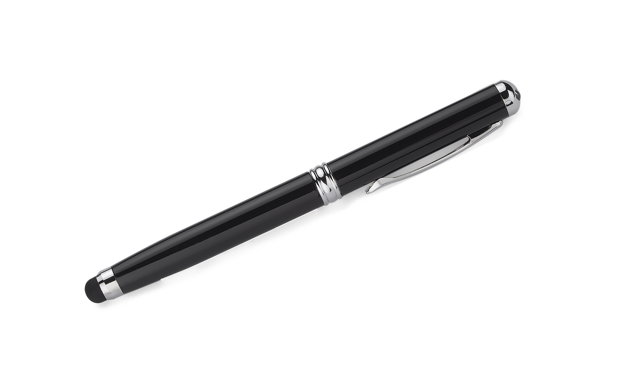 Długopis wykonany z metalu łączący aż cztery praktyczne funkcje: długopis, touch pen, wskaźnik laserowy, latarka. W jednym przyrządzie mieści się wszystko czego można potrzebować w czasie prezentacji multimedialnej lub innych biznesowych spotkań. Zgodnie z dyrektywą Unii Europejskiej (2006/25/EU) i Normą Polska ( PN-EN 60825-1:2005) wskaźnik posiada naklejkę informującą o niebezpieczeństiwe użytkowania. Logo wygrawerujemy.