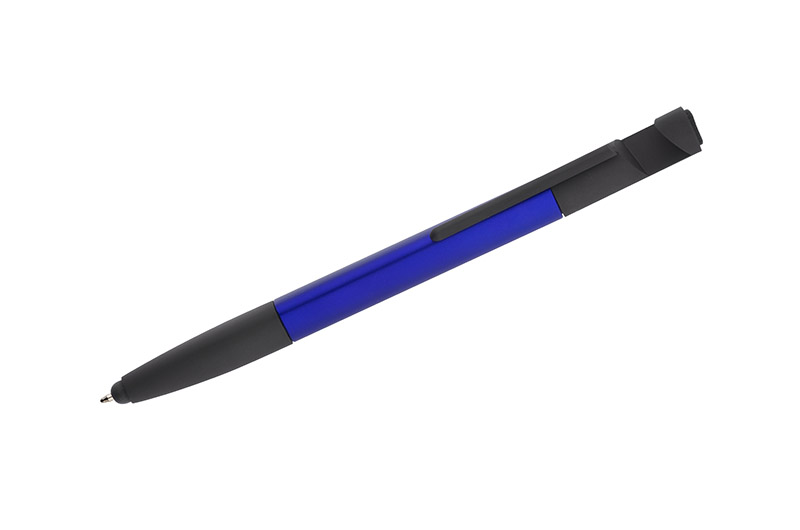 Praktyczny SET w małej formie mieści aż 8 przydatnych funkcji: długopis, końcówka do obsługi ekranów dotykowych, czyścik ekranów, stojak do telefonu, 2 śrubokręty, 2 linijki (calowa i centymetrowa). Wykonany z tworzywa sztucznego. Mechanizm typu twist. Wkład typu X20 w kolorze niebieskim.