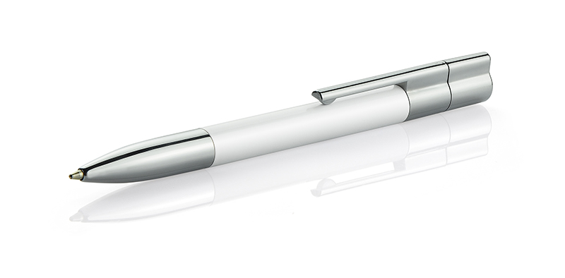 Pamięć USB ukryta w klipie długopisu.
