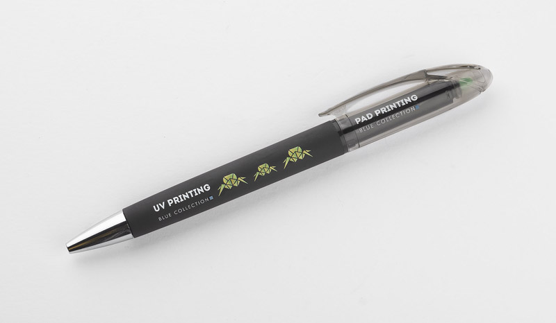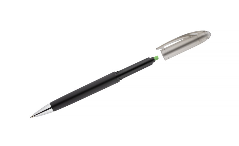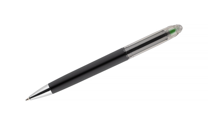 HILIG to dwa przydatne gadżety w jednym. Na górze tradycyjnego długopisu został umieszczony zakreślacz w żywym kolorze. Pokryty gumową powłoką korpus długopisu jest niezwykle przyjemny w dotyku. Długopis z mechanizmem typu twist, wkład długopisu w kolorze niebieskim.