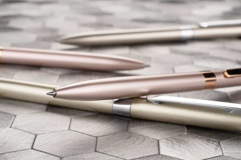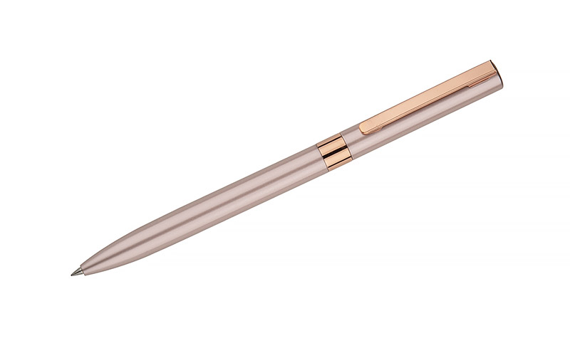 Długopis GELLE to elegancja i wygoda pisania w jednym. Długopis wykonany jest z metalu z wykończeniami chromowanymi lub złoconymi i posiada mechanizm typu twist. Żelowy wkład o grubości 0,5 mm w kolorze niebieskim.