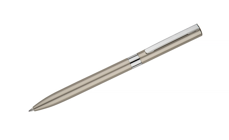 Długopis GELLE to elegancja i wygoda pisania w jednym. Długopis wykonany jest z metalu z wykończeniami chromowanymi lub złoconymi i posiada mechanizm typu twist. Żelowy wkład o grubości 0,5 mm w kolorze niebieskim.