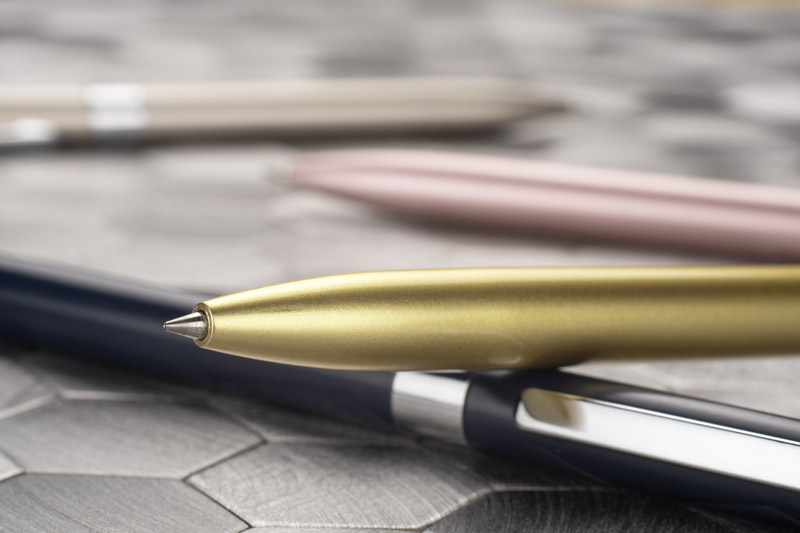 Długopis GELLE to elegancja i wygoda pisania w jednym. Długopis wykonany jest z metalu z wykończeniami chromowanymi lub złoconymi i posiada mechanizm typu twist. Żelowy wkład o grubości 0,5 mm w kolorze niebieskim.