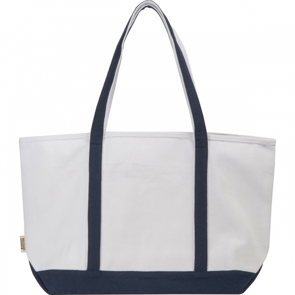 Solidna torba o gramaturze 730 g/m2, wykonana z bawełny pochodzącej z recyklingu z długimi kolorowymi uchwytami.
