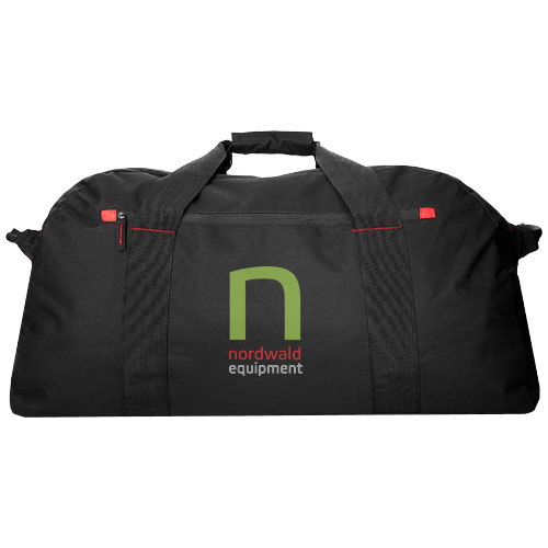 Bardzo duża torba podróżna z główną przegrodą zapinaną na zamek oraz jedną kieszonką na froncie również zapinaną na zamek.