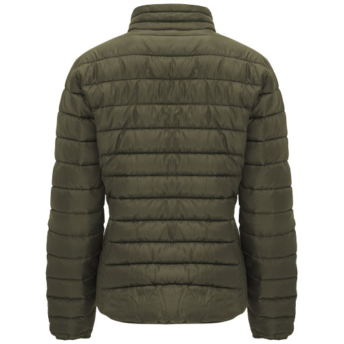 Damska kurtka pikowana z wypełnieniem przypominającym w dotyku pierze. Odwrócone zamki błyskawiczne z dopasowanym ochraniaczem podbródka i ściągaczem. Dwie przednie kieszenie z zamkami błyskawicznymi. Dopasowana elastyczna lamówka w kołnierzu, mankietach i u dołu. Kontrastowa podszewka wewnętrzna. W zestawie torba transportowa. Lekka i składana odzież. Dopasowany krój. Usuwalna metka. Wodoodporność. Wiatroszczelna.