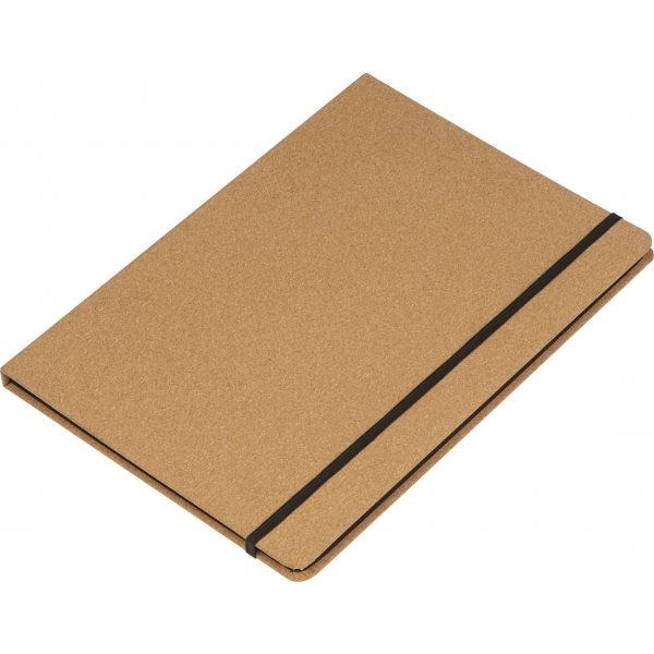 Folder konferencyjny o formacie A4, w korkowej okładce. Wewnątrz znajduje się notatnik z 60 kartkami w linie, z papieru pochodzącego z recyklingu oraz przegródki na notatki czy wizytówki.